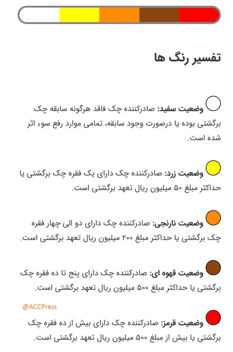 نتیجه این استعلام به پنج وضعیت سفید، زرد، نارنجی،قهوه ای و قرمز اشاره دارد که در تصویر آمده است.